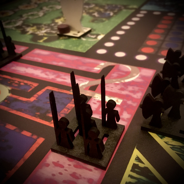 Das Spielfeld (90cmX90cm) kannst Du auf eine Plane drucken lassen und auslegen