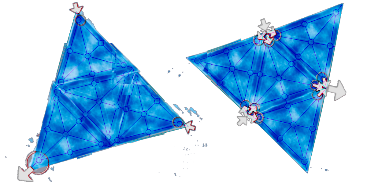 The Tripple (3 game stones + 1 color marker) can move from a point to the next point or from the middle point of a triangle to the middle point of another triangle or from a middle point of a triangle to the three corners of the big triangle.